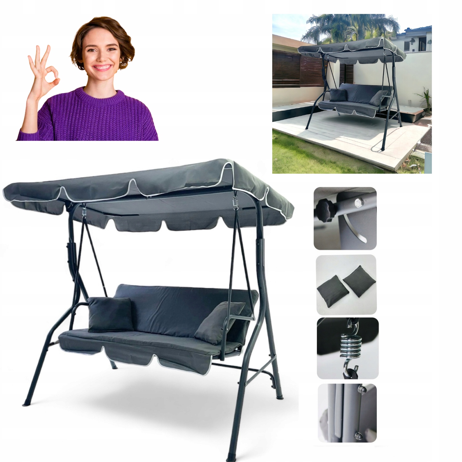 HUŚTAWKA OGRODOWA 3 OSOBOWA SZARA BUJANA REGULOWANY DASZEK MOCNA 240KG
